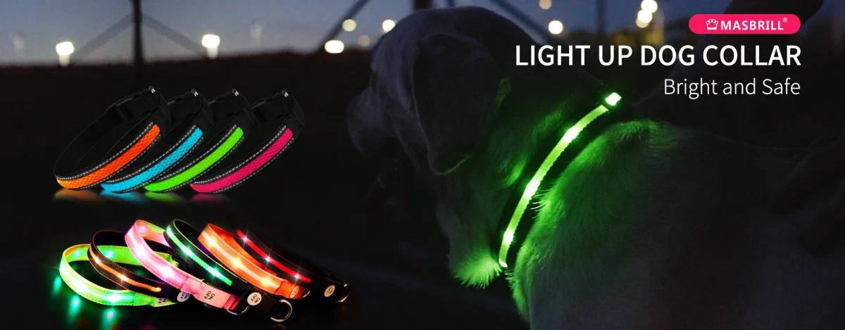 MASBRILL LED Dog Collar Luminous Pet Supplies Dog Collar Waterpoof Safety Glow Necklace Flashing Lighting Up Collars Accessories
