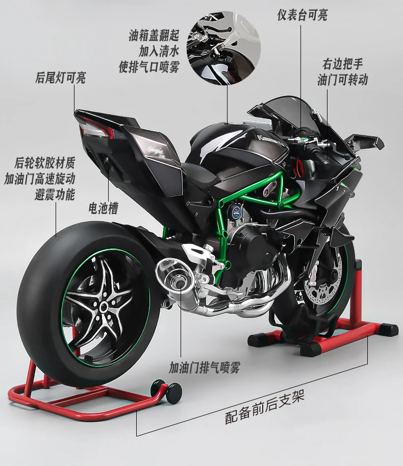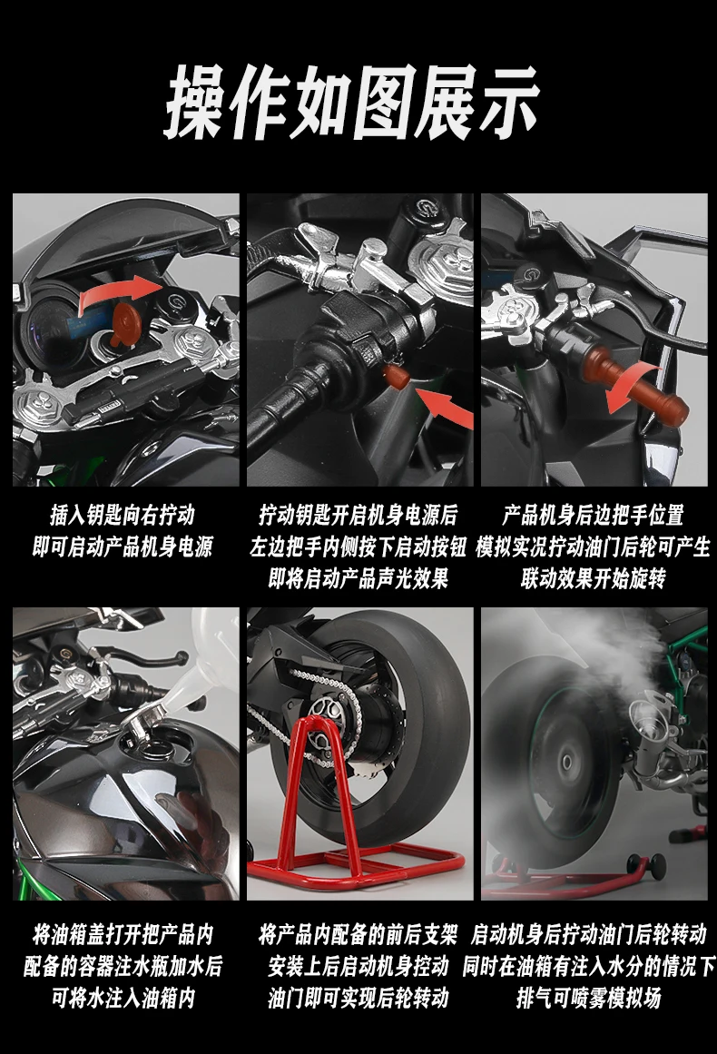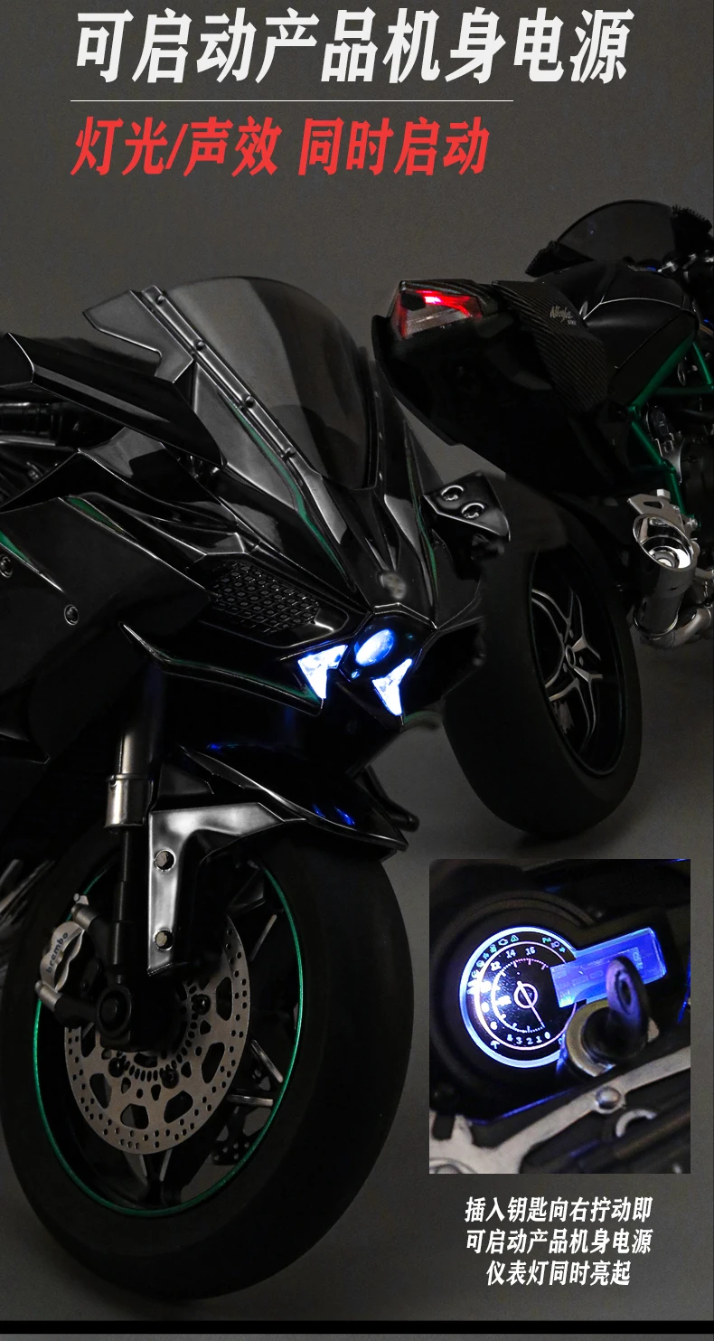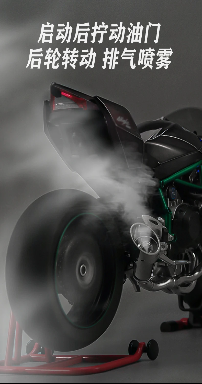 Spray 1:6 Kavvasaki Racing Ninja 500 H2R Motorcycle Simulation Sound Light Fast And Furious Kid Gift Collection value Display