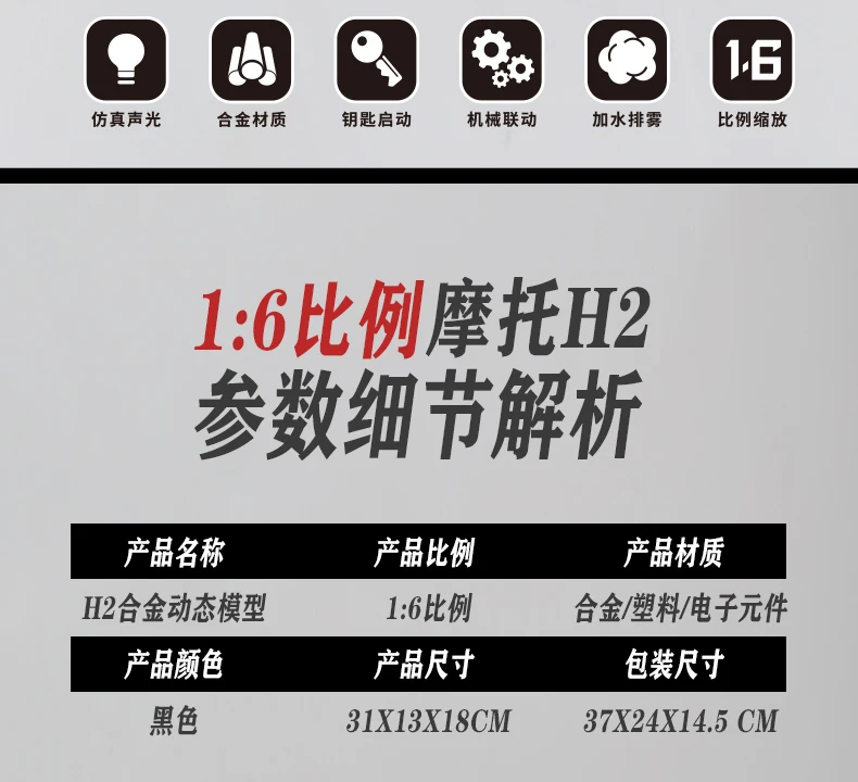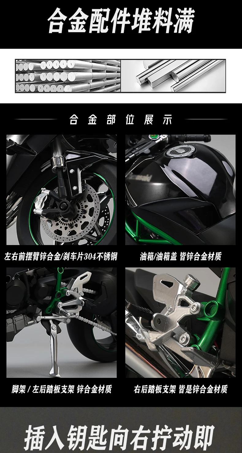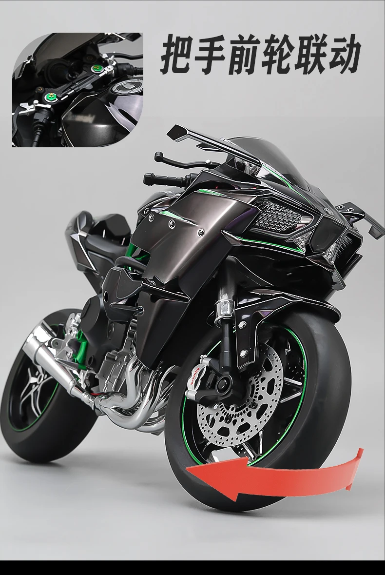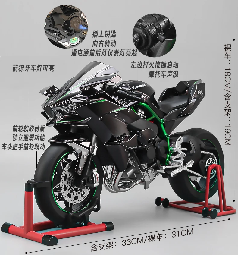 Spray 1:6 Kavvasaki Racing Ninja 500 H2R Motorcycle Simulation Sound Light Fast And Furious Kid Gift Collection value Display
